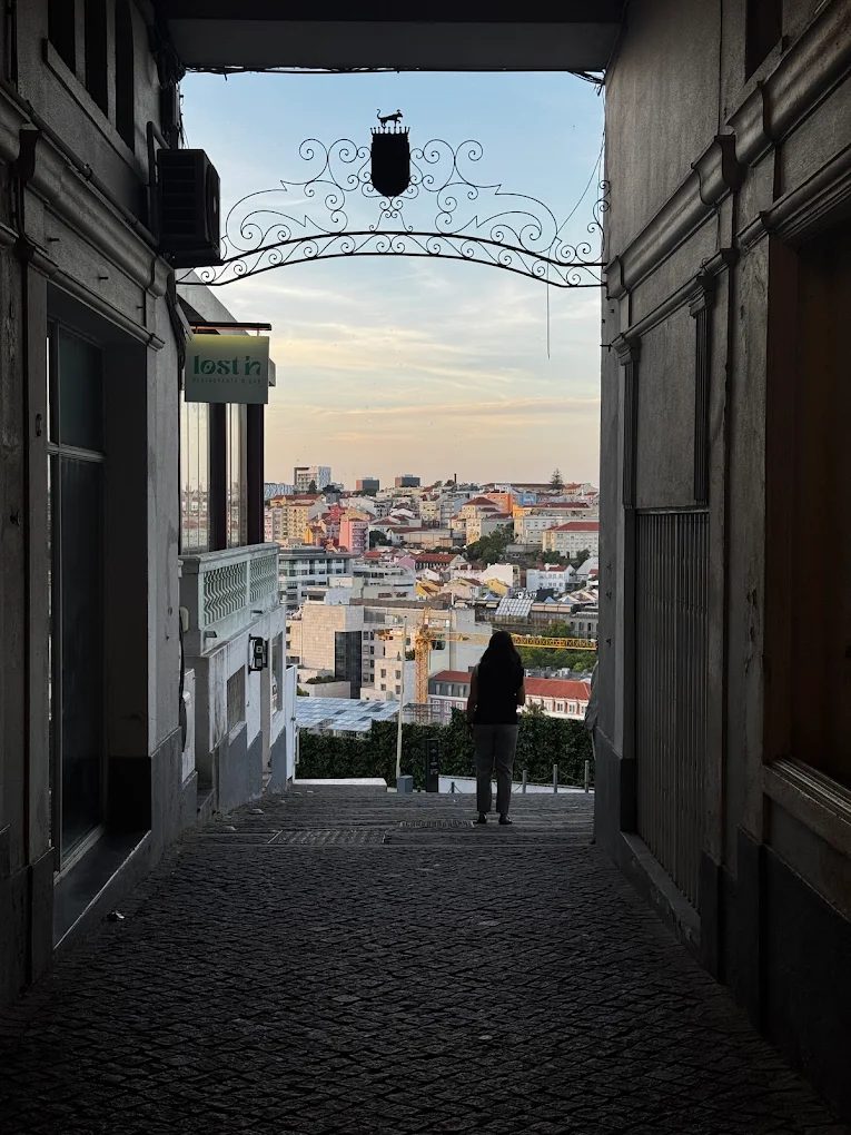 Quando o espaço se abre, Lisboa aparece, não aos poucos, não em partes, aparece inteira. A vista interrompe a conversa por alguns segundos, não por grandiosidade calculada, mas porque o olhar precisa de um breve ajuste antes de seguir.